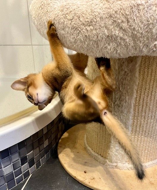 Auf den Kratzbaum klettern klappt inzwischen prima!