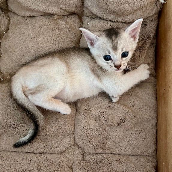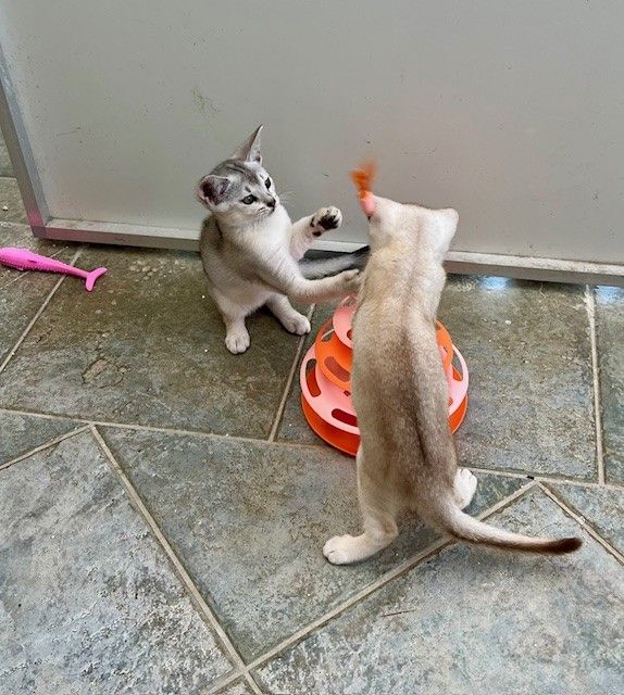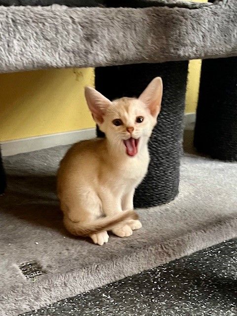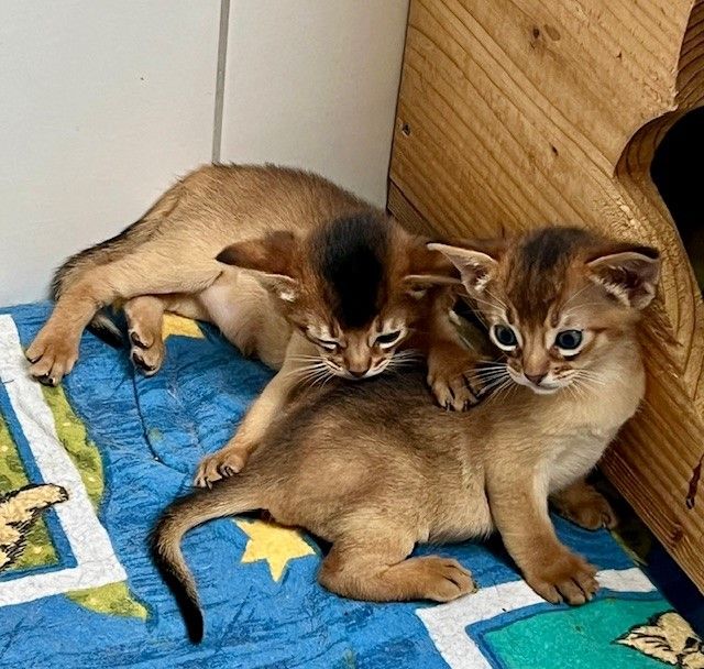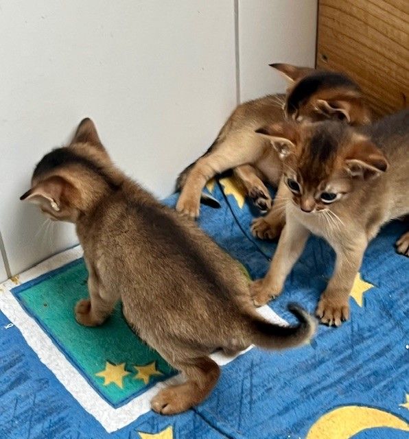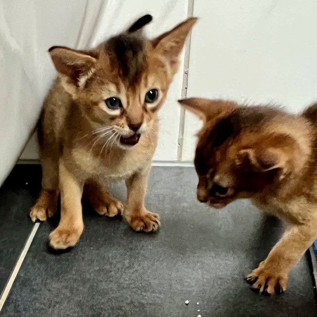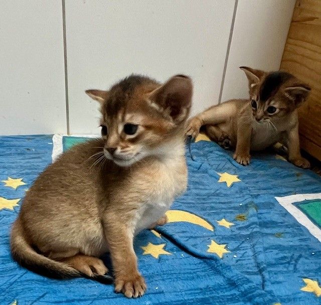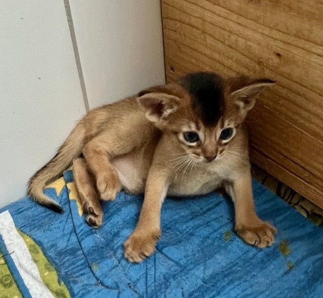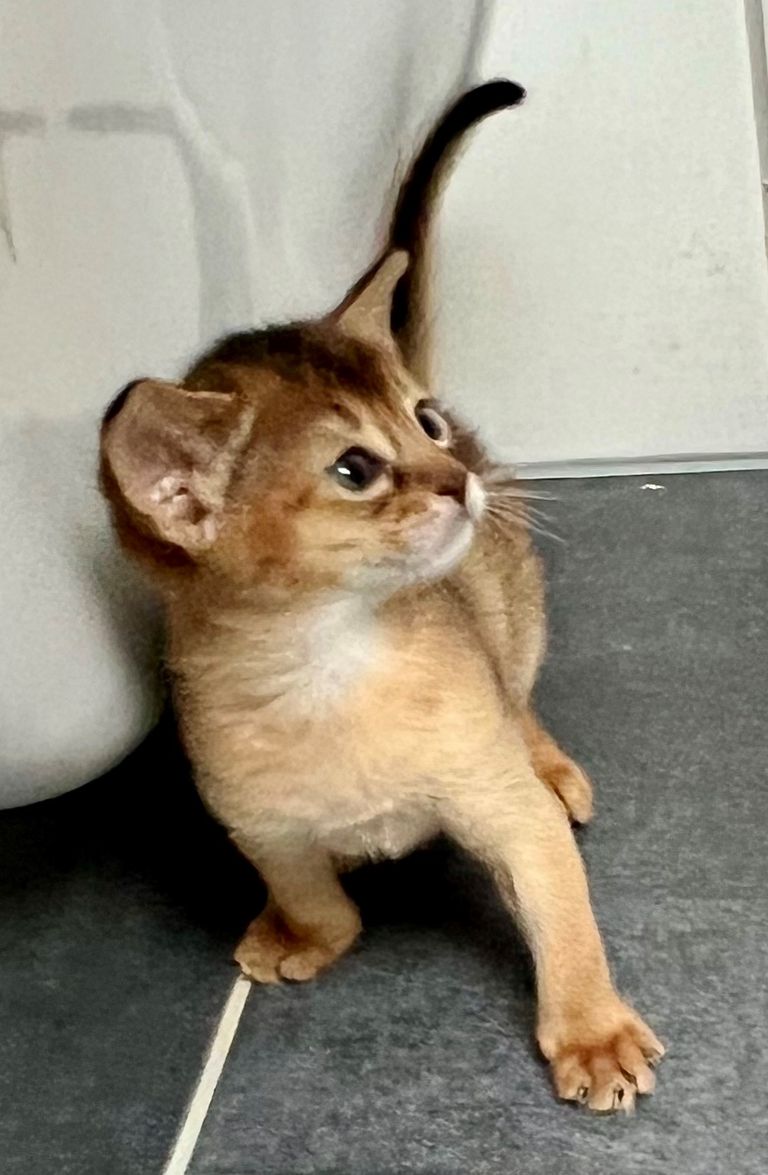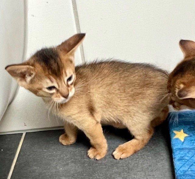 Da die Käufer von Nala kurzfrisitig auf ein Kitten aus dem jüngeren Abessinierwurf umgeschwenkt sind, haben wir aus diesem Wurf wieder das sorrel-silver farbene Mädel verfügbar. Nala hat bereits ihre zweite Impfung bekommen und ist ab Mitte Oktober bereit zur Abgabe.