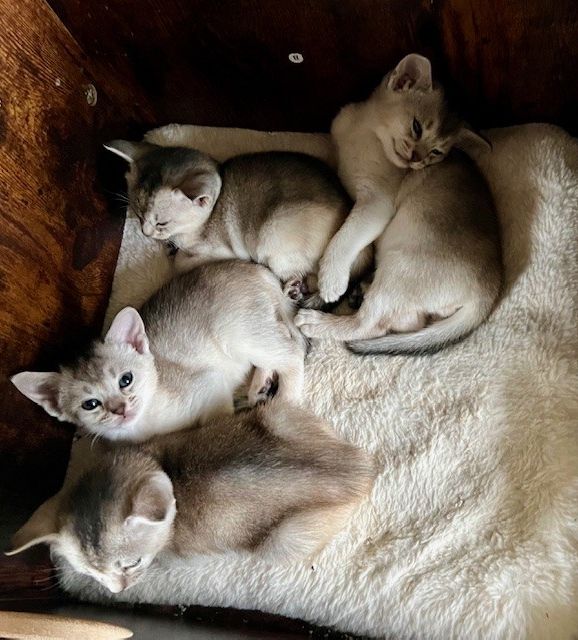 Die reine silber Verpaarung von unseren beiden schwedischen Abessiniern Terra und Axum hat auch in diesem Jahr vier wunderschöne Kitten gebracht.
