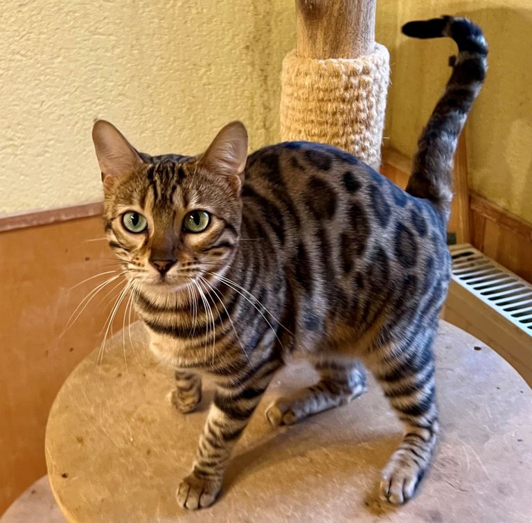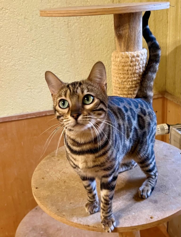 Nachdem wir unsere Zuchtkatze Nike in 2021 haben kastrieren lassen war klar, dass wir von dieser besonderen Katze, die uns viele Würfe mit tollen Kitten geschenkt hatte, eine Kätzin für unsere Zucht behalten werden. Unsere Wahl fiel auf Nike 2.0, eine braun rosetted Tochter aus ihrem letzten Wurf. Diese Katze sieht zwar völlig anders aus als ihre Mutter, ist aber charaktermäßig ein Abbild von ihr und natürlich Snowträgerin. Nike 2.0 spielt mit den Abys, liebt es aus Schüsseln Wasser auszugraben, auf den Balkons herumzutoben und ist sehr änhänglich und verschmust.
